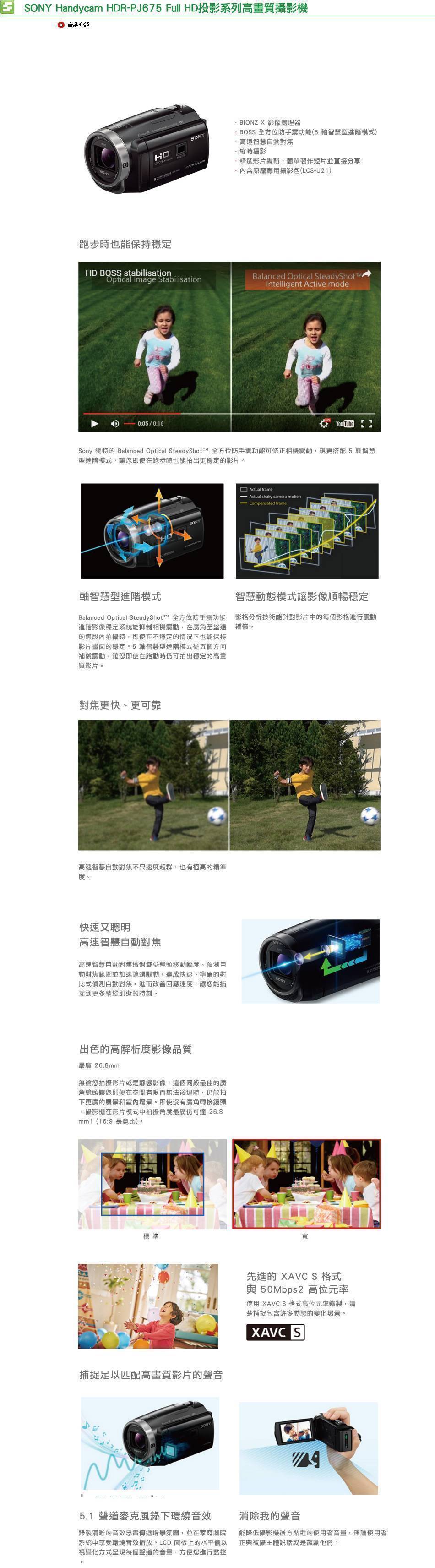 Sony 獨特的 Balanced Optical SteadyShot™ 全方位防手震功能可修正相機震動,現更搭配 5 軸智慧型進階模式,讓您即使在跑步時也能拍出更穩定的影片。