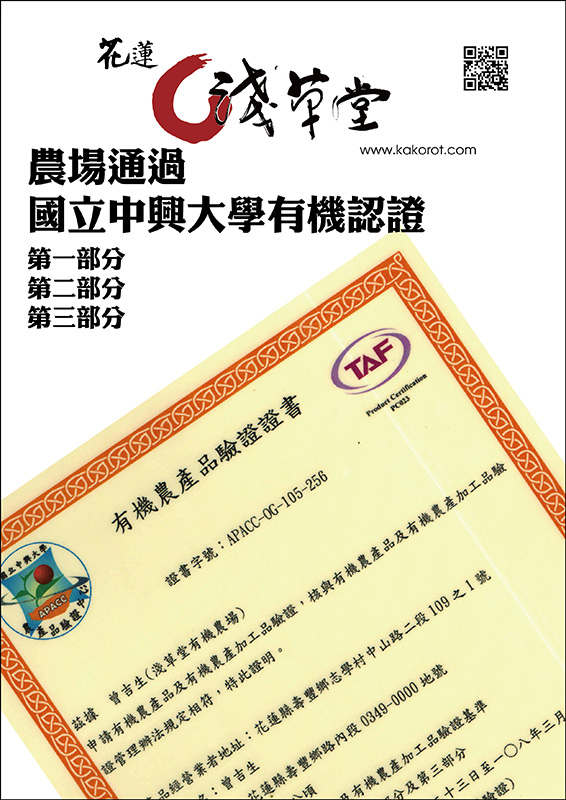 加工業者:花蓮淺草堂有機加工(花蓮第一家有機茶包加工場)