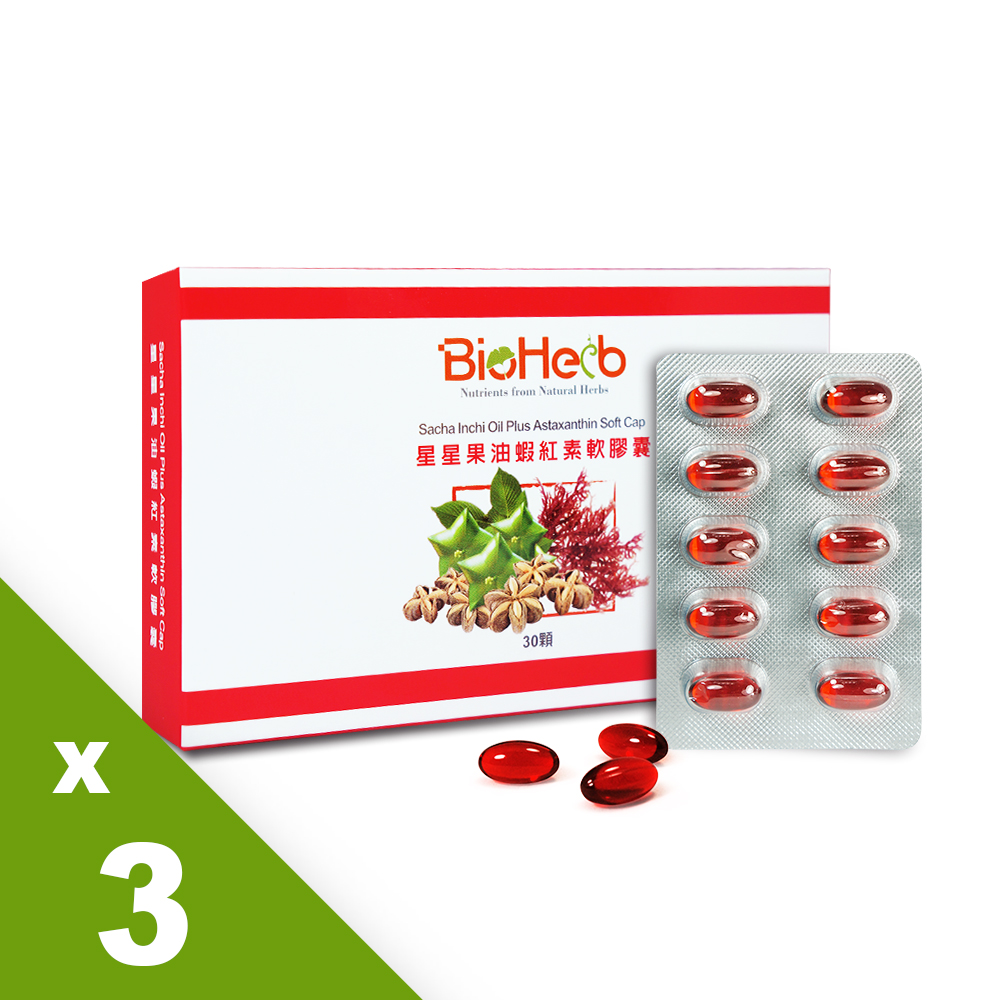 【碧荷柏】星星果油蝦紅素軟膠囊(500mgX30顆/盒)x3入
